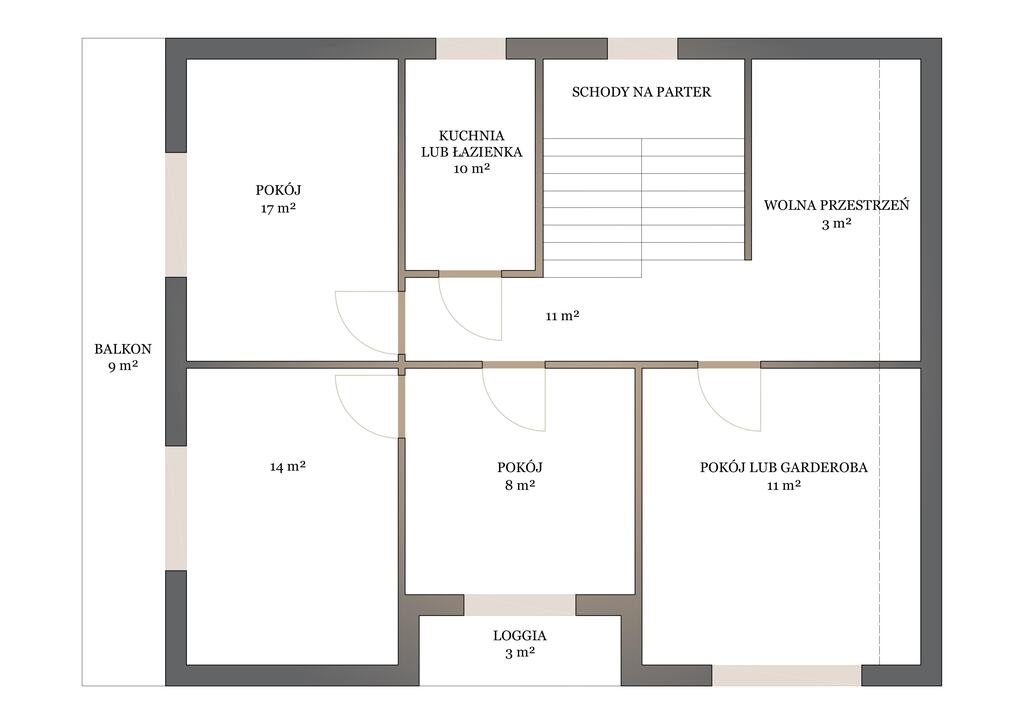 Piętro – do wykończenia, co daje możliwość pełnej personalizacji wnętrz.